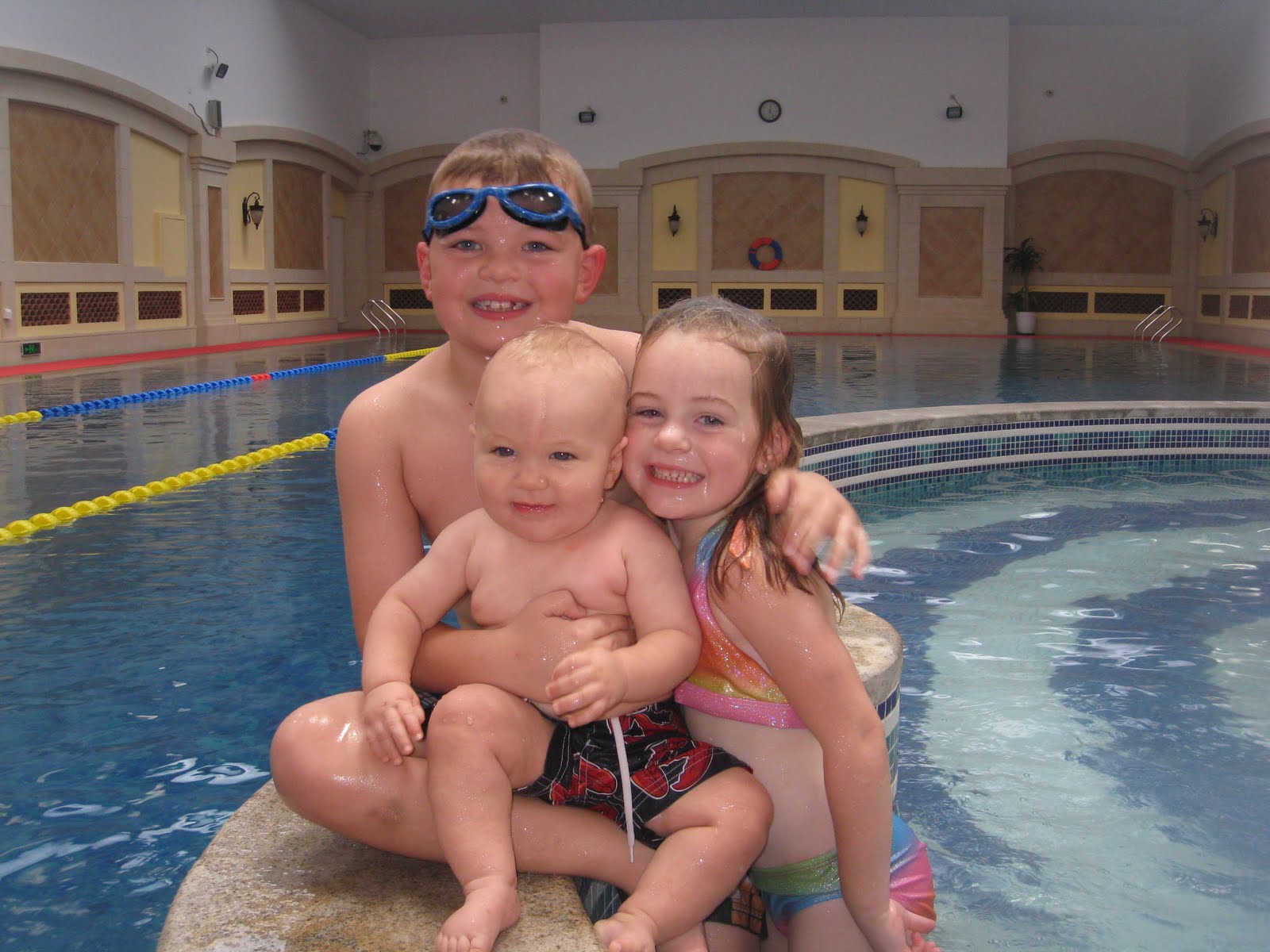 Our indoor pool at the clubhouse opened this week, so we took the kids there on Saturday. They had a fabulous time and we basically had the whole pool to ourselves. The only down side is that they forgot to build a shallow end to the pool. The hot tub is great, huge and shallow and the pool is big and really nice, but you can't touch. :) Too funny!! Anyway, here are a few pictures from the afternoon...