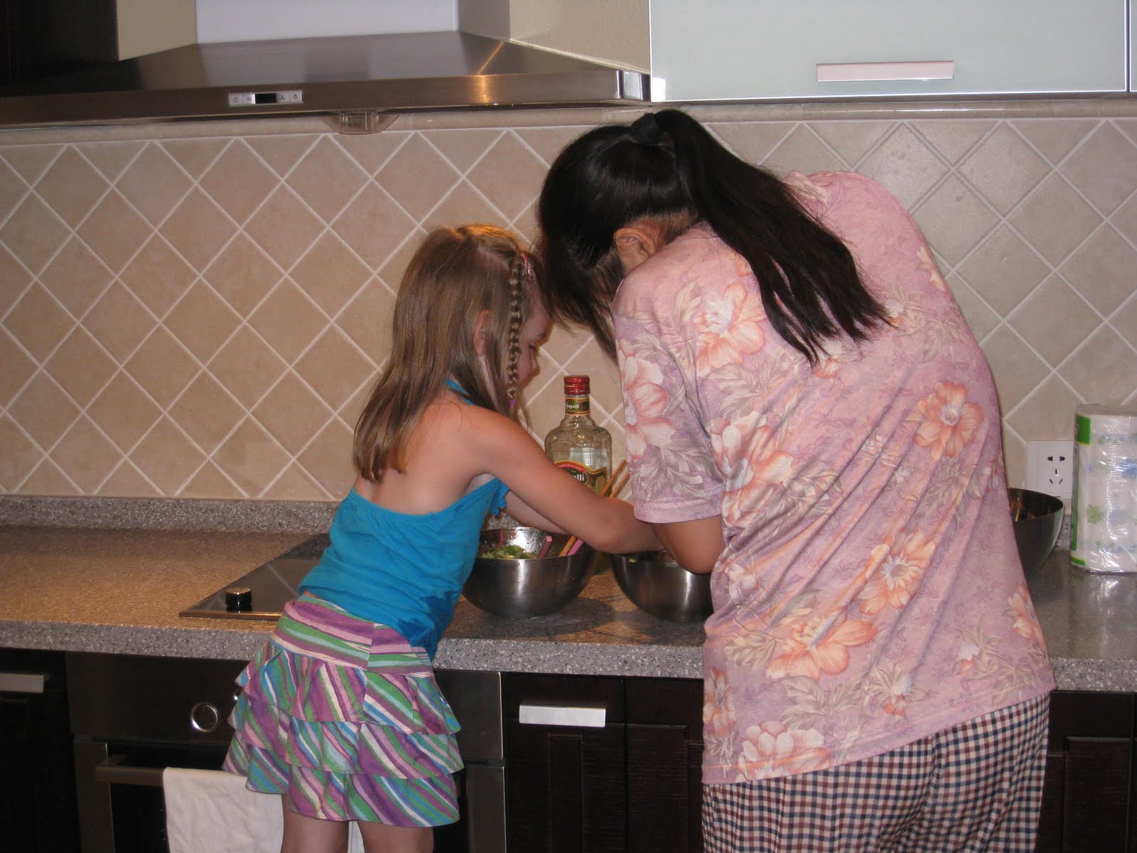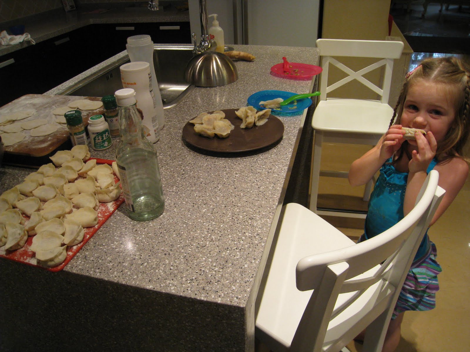 So we (I) broke down and got an ayi this week. Ayi in Chinese means "auntie" and they are hired to be a helper...to clean, do laundry, help with the kids, babysit, etc. I didn't want to have one because I thought I could do it all on my own. Who am I kidding? I don't have time to clean a 4000sq ft house and take care of the kids and be involved in their school...let alone have outings to the secret handbag shop! :) Anyway, our driver recommended her so we decided why not giver her a try. Well she was great...and then she quit on day 3 because the work was too hard. Talk about making me feel mean! Although the only thing I asked her to do differently from what she was doing was to use cleaning solutions...she cleaned (8hrs) on Monday with only water. She did make dumplings with Addi one afternoon though.